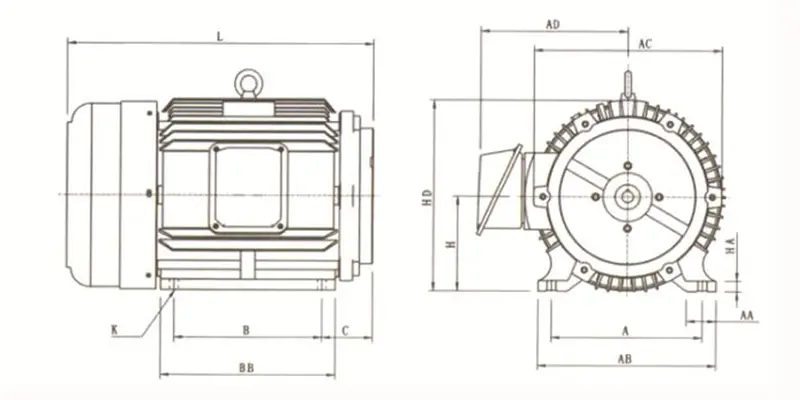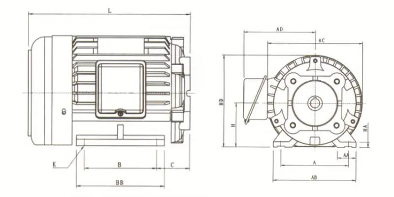| 4P | 6P | 框號 | 相數 | 图号 | A | AA | AB | AC | AD | B | BB | C | H | HA | HD | K | L | 净重(kg) | |